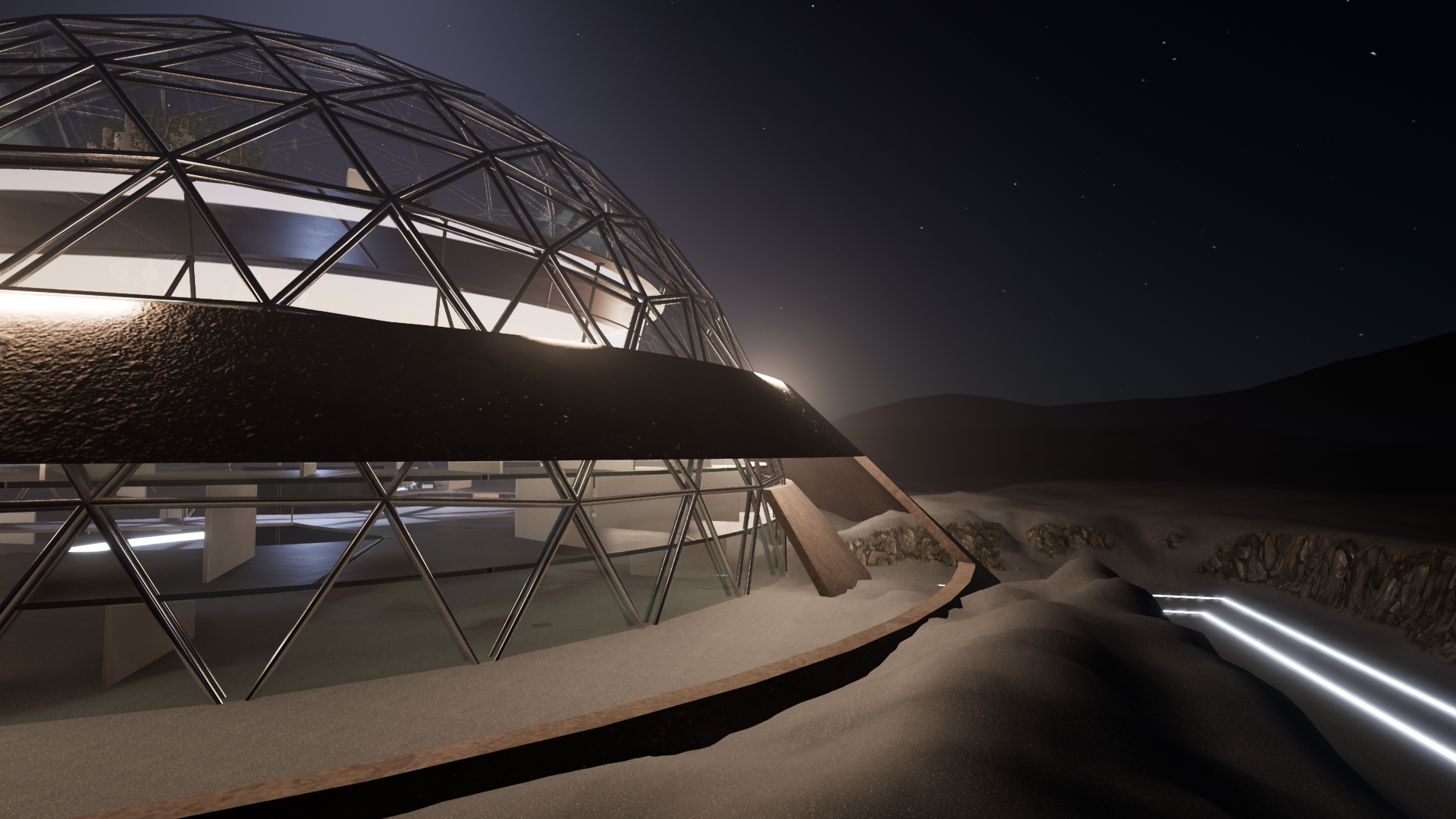They are also lighter, more structurally sound and thus require fewer materials. Steel framing and infused glass, along with processed lunar regolith to construct future bio-ceramics, can make geodesic domes also highly fire-resistant. The dome shape promotes more efficient air circulation and keep temperatures even throughout the structure, making them more energy-efficient.